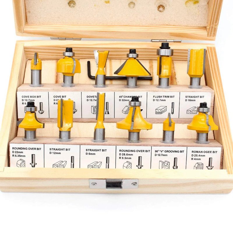 Completo set di 15 frese per legno in acciaio al tungsteno con gambo da 8mm, perfetto per una varietà di lavori di lavorazione del legno per professionisti e appassionati di bricolage.