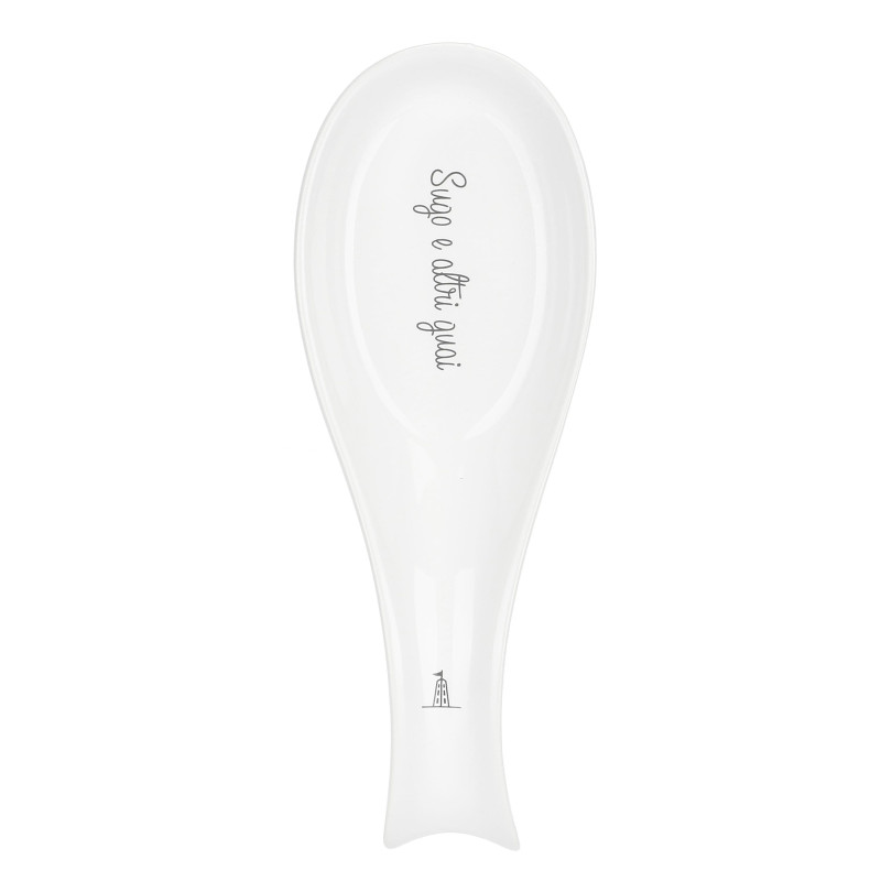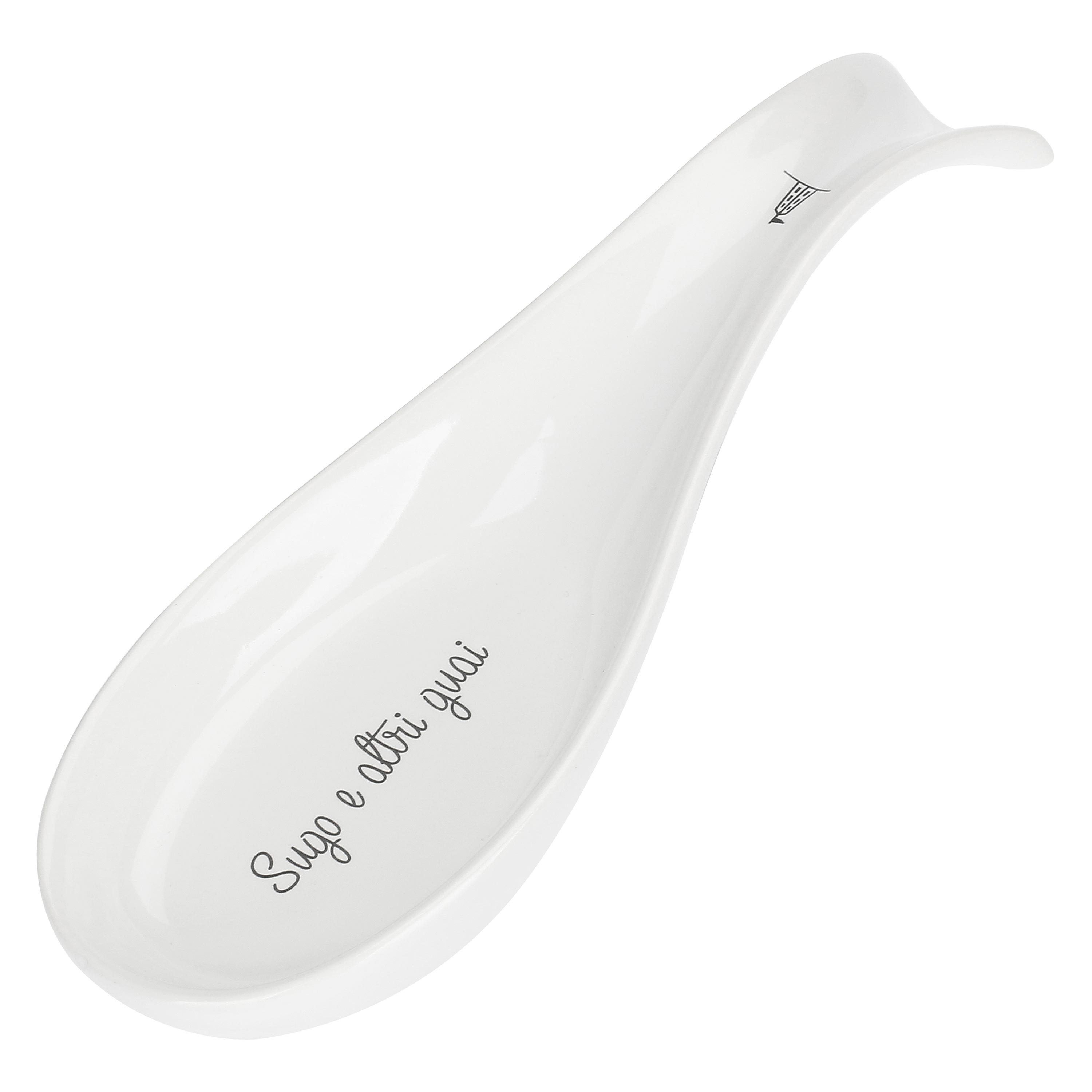 Poggiamestolo in Porcellana con Decoro Scritta colore Bianco