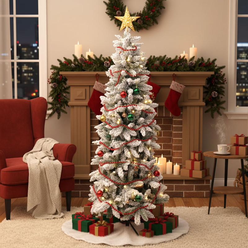 Scegli l'Albero di Natale Slim Innevato Minnesota per portare nella tua casa l'incanto delle feste natalizie con un tocco di eleganza e tradizione!
