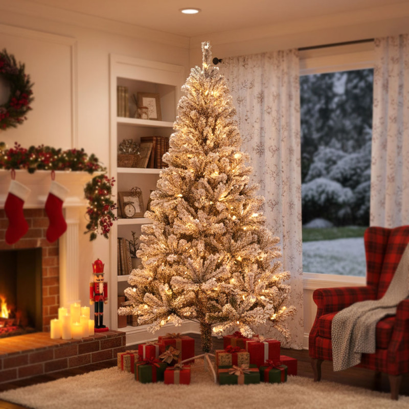 Realizzato in PVC di alta qualità, questo albero da 270 cm offre un aspetto naturale e realistico, con 1800 punte folte e un delicato effetto neve che regala un tocco magico alla tua casa.