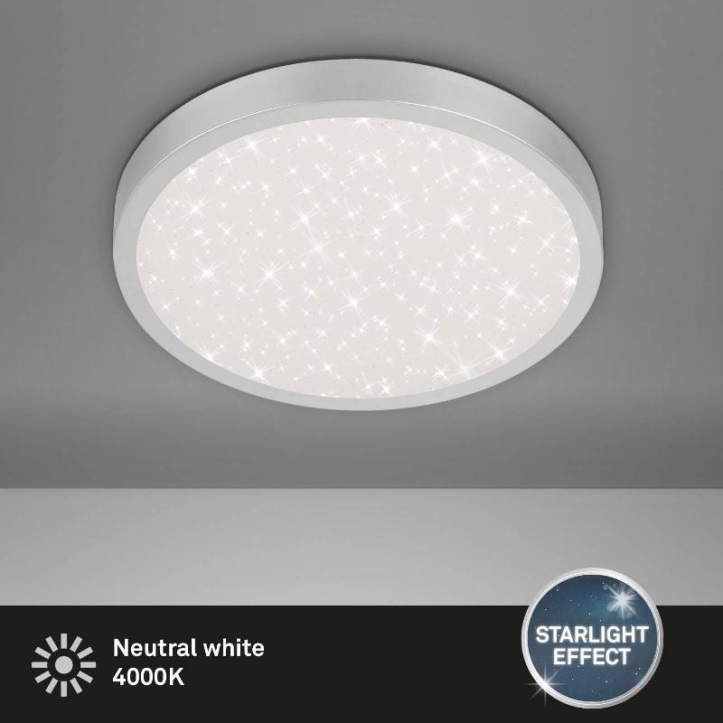Plafoniera e rotonda a LED con design a cielo stellato (grazie ai piccoli diodi luminosi presenti nella lampada; nessuna proiezione) in bianco-argento, in metallo e plastica