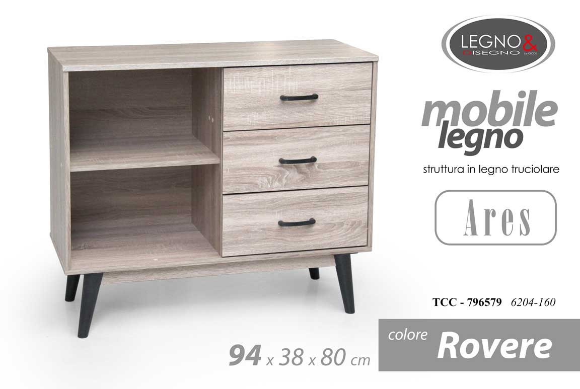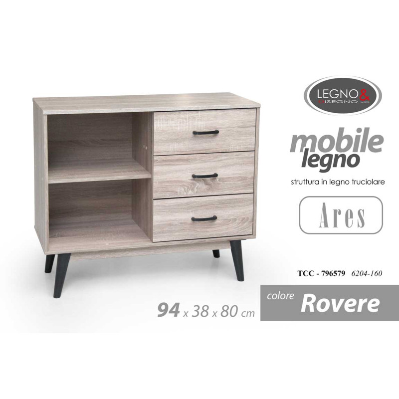 Mobile 3 Cassetti e 2 Vani cm 94x38xh.80 Colore Rovere