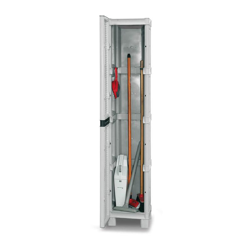 Gli armadi Concert sono compatti, robusti e capienti. Adatti per la casa, garage, giardino, sottoscala, balconi, quindi sia per l’interno, sia per l’esterno. Dotato di cerniere in acciaio anti-usura per una chiusura a scatto da "vero armadio". Il sistema di ripiani integrati permette una notevole capacità di carico e garantisce stabilità alla struttura. L'armadio è dotato, inoltre, di piedini che permettono una facile pulizia del pavimento sottostante, per evitare che lo sporco si accumuli.
