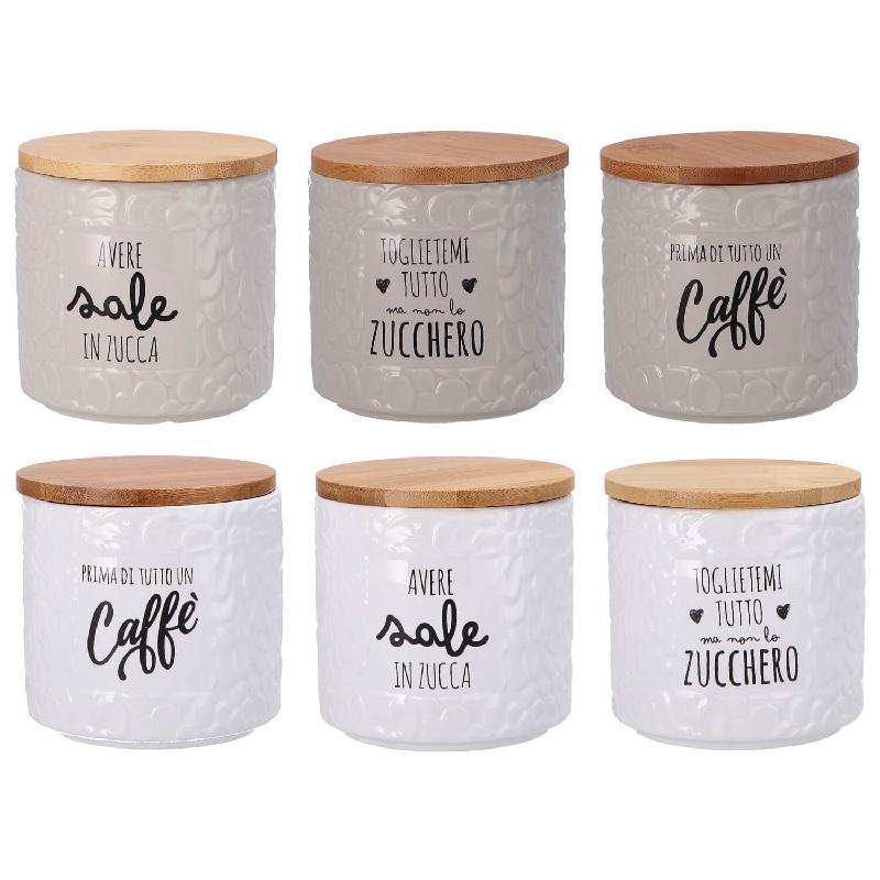 Barattolo in Ceramica con Coperchio Legno Diametro 10 cm