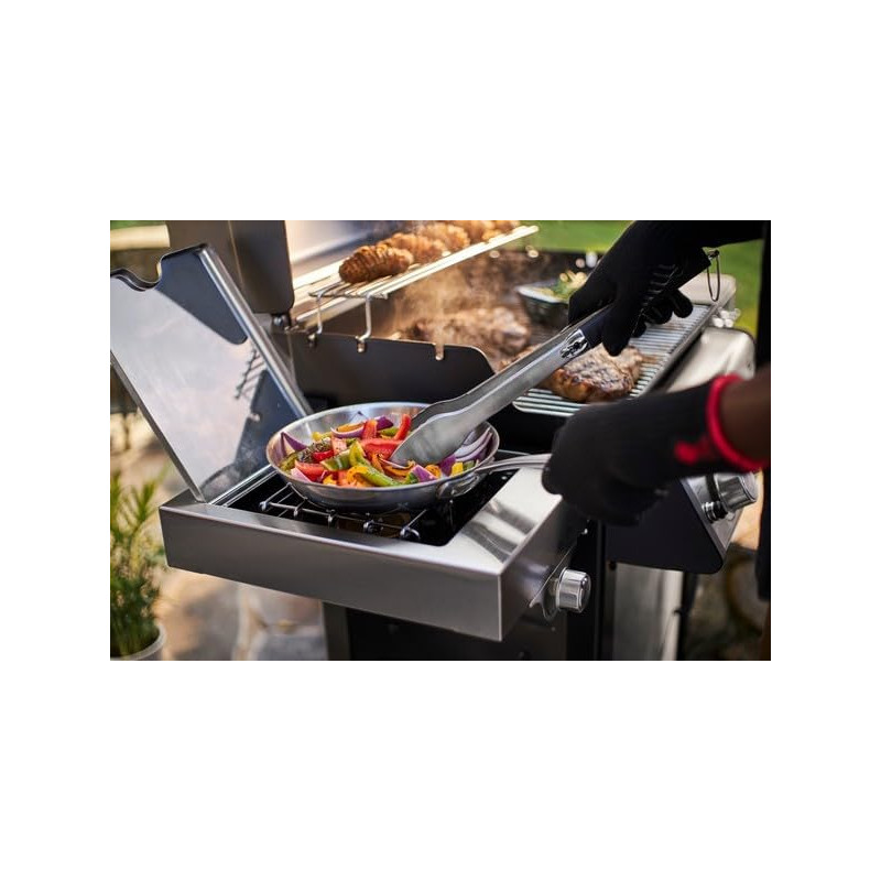 Spirit SP-335 elimina la necessità di una "cucina interna". Questo barbecue a gas a tre fuochi è dotato di tutto il necessario per grigliare un pasto completo all'aria aperta. Prepara un sugo o fai bollire l'acqua sul bruciatore laterale. Crea una zona di calore intenso per una bistecca perfettamente grigliata grazie alla sear station e tosta i bun o mantieni il cibo caldo sulla griglia mentre la portata principale termina di cuocere sulla griglia.