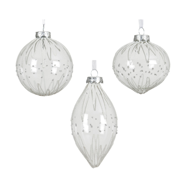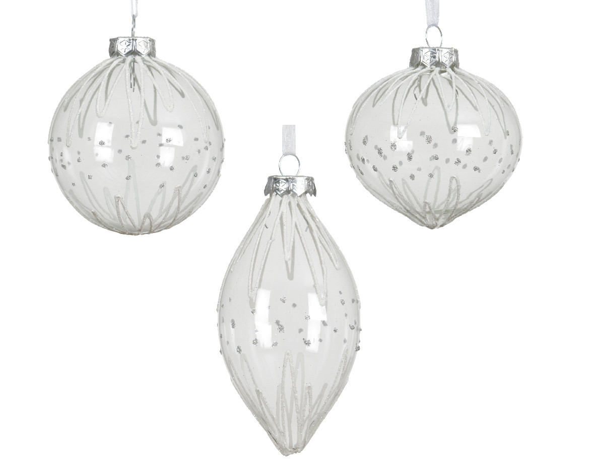 Palla in Vetro con Glitter Bianco e Trasparente Diametro 8 cm Assortito (1 pezzo, invio casuale)