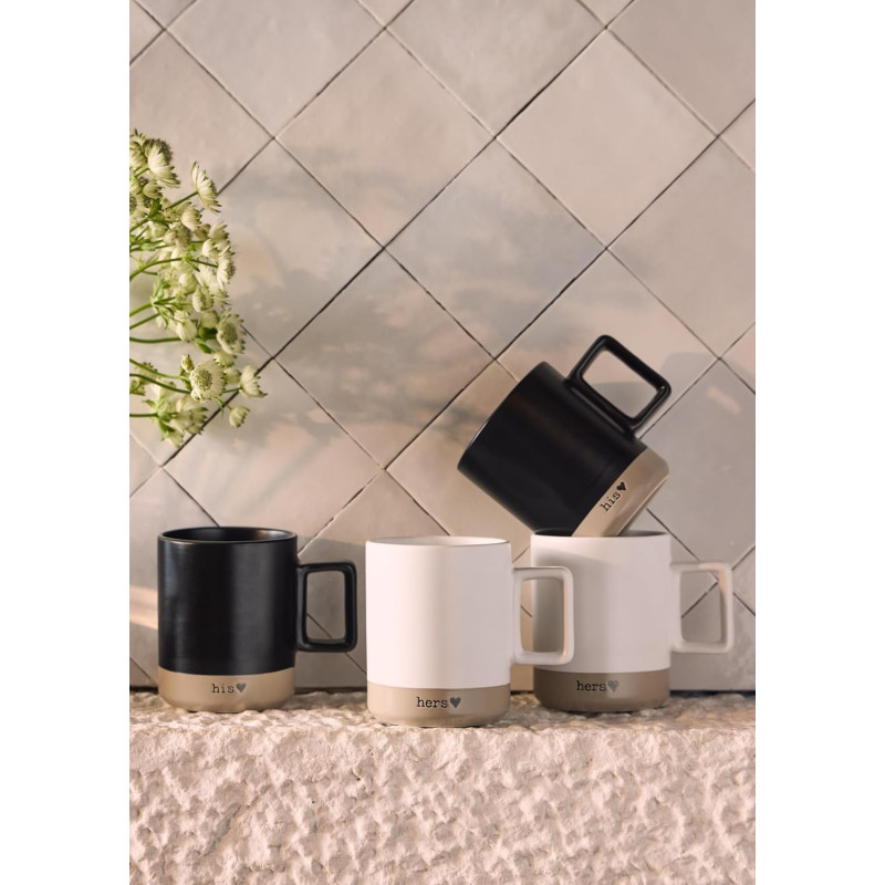 Celebra ogni momento insieme con il set di mug in stoneware “You & Me”, pensato per chi ama condividere la quotidianità con stile. Ogni set comprende due tazze abbinate – una nera con scritta his e una bianca con scritta hers – per un gesto semplice ma carico di significato, ideale per colazioni, pause caffè o tisane serali in compagnia. Realizzate in stoneware, queste tazze da 400 ml combinano resistenza, eleganza e comfort d’uso. Il design moderno, con finitura bicolore e manico squadrato, aggiunge un tocco di originalità alla tavola e le rende perfette anche come idea regalo romantica per anniversari, San Valentino o occasioni speciali.
