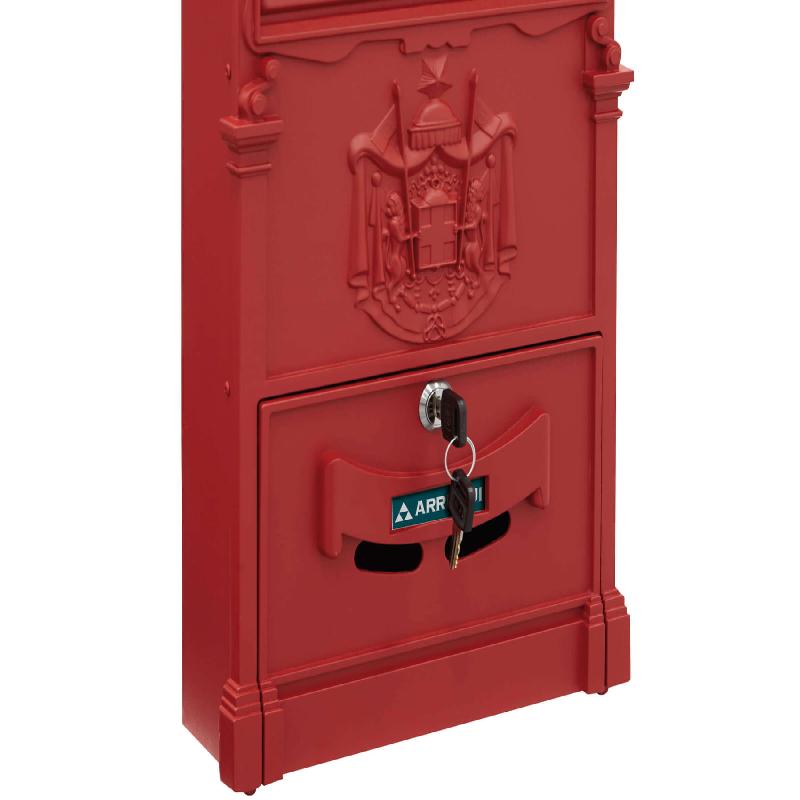 Cassetta postale rossa, realizzata in alluminio pressofuso altamente resistente alla corrosione (4/4).
