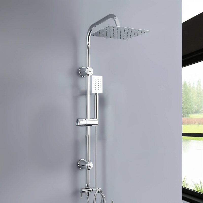 Colonna doccia moderna con soffione quadrato in acciaio inox antiruggine. Design elegante e funzionale, ideale per migliorare l'estetica e la funzionalità del tuo bagno. Il soffione quadrato offre una copertura uniforme dell'acqua, garantendo un'esperienza di doccia rilassante. La struttura in acciaio inossidabile assicura durabilità e resistenza alla corrosione.