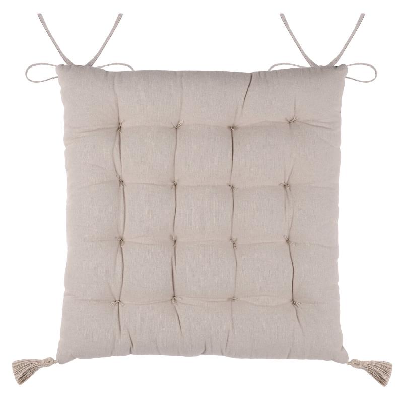 E' realizzato in tessuto 100% cotone con laccetti per il fissaggio allo schienale della sedia.