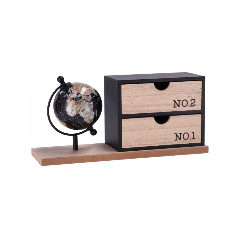 Decorazione in mdf con mappamondo e 2 cassetti--cm. 30 x 9 x h. cm. 13,5