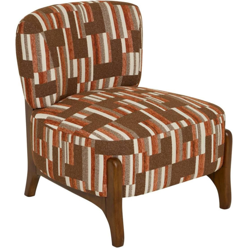 Montata su gambe in legno di hevea, la poltrona Calix è rivestita con un bel tessuto a motivi geometrici. È certificata Oeko-Tex®. Abbinatela a un bel tavolino da caffè in legno Atmosphera per fare un richiamo di materiale.