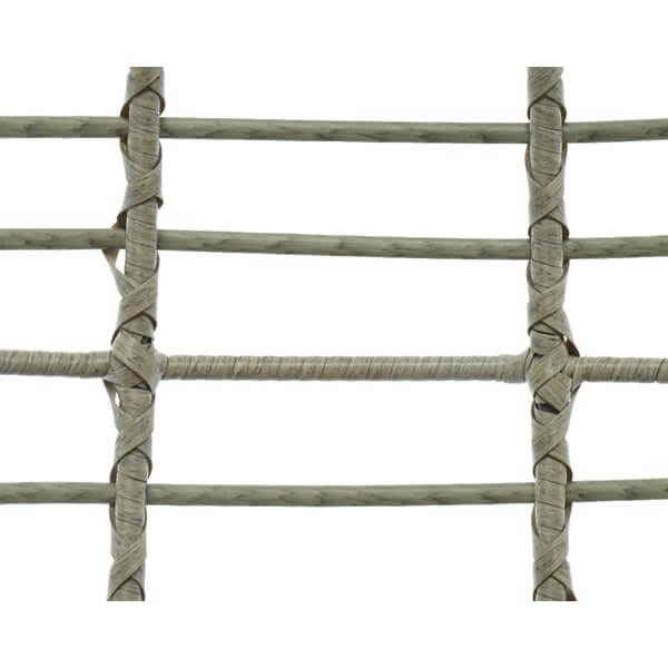 Composizione del materiale: vimini PE D9mm tondo pieno e vimini piatto 9mm. 90% PE, 5% PP, 5% antiossidante, agente anti UV
