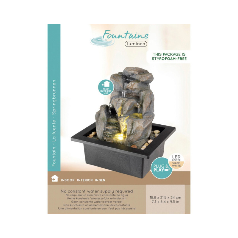 Fontana in Poliresina con LED Luce Calda cm.18,8x21,5 h.24 colore Grigio