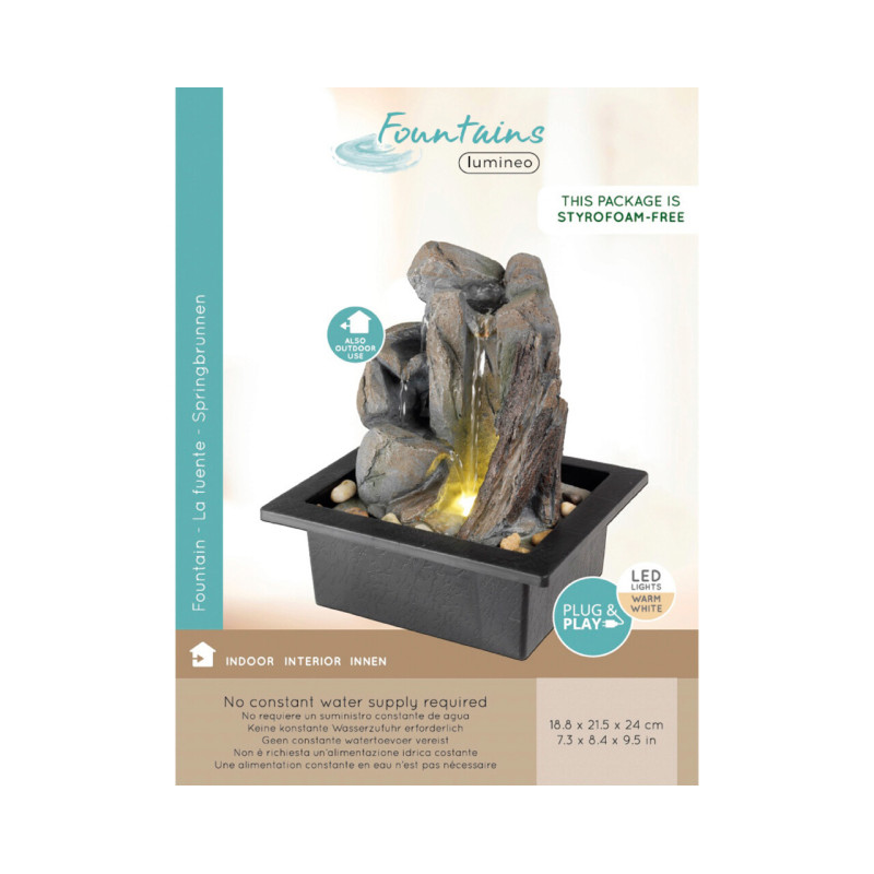 Fontana in Poliresina con Luce Calda cm.18,8x21,5 h.24 colore Grigio