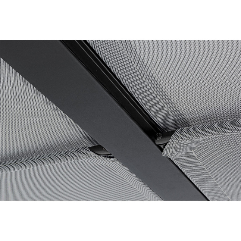Gazebo in stile moderno modello Noah, realizzato con struttura in alluminio verniciato a polvere colore grigio scuro.