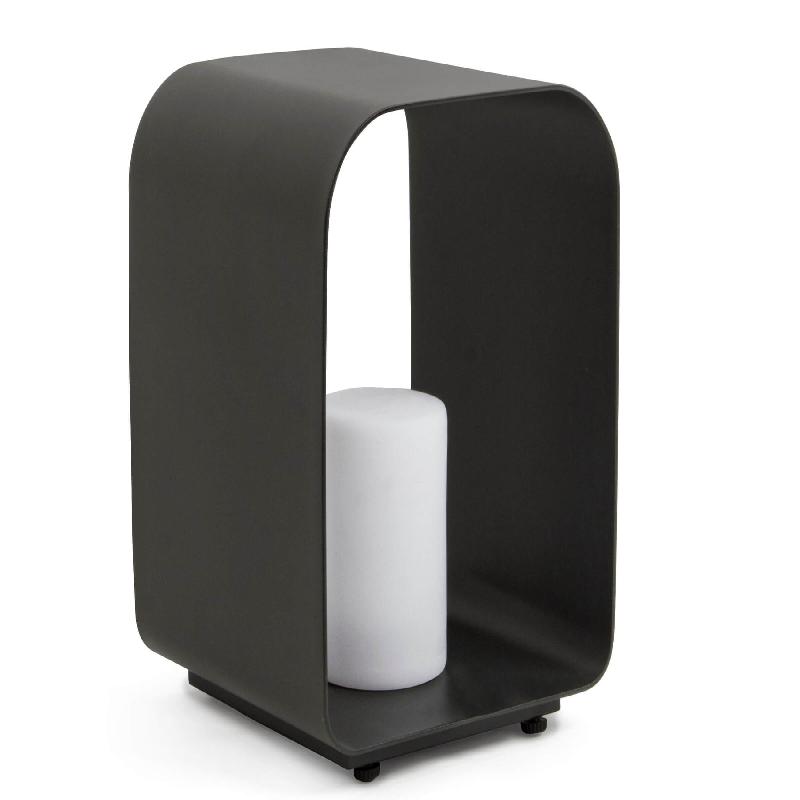 La struttura in colore antracite conferisce alla lampada una presenza elegante e sofisticata, mentre la porta Ridley aggiunge un tocco di praticità, consentendo di avere a portata di mano gli oggetti essenziali durante le serate all'aperto.