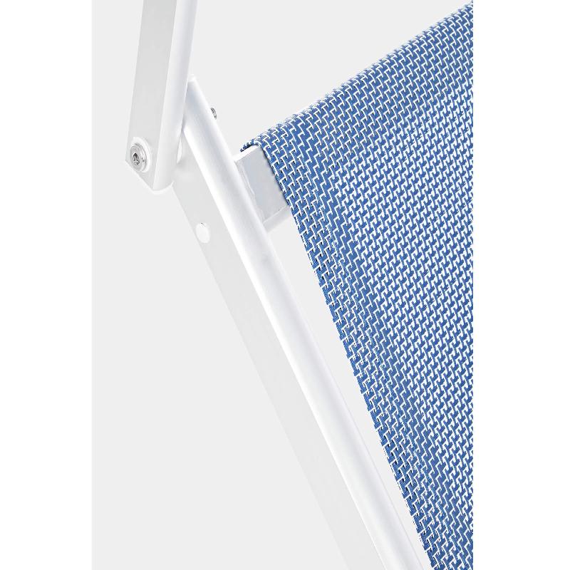 Il tessuto del lettino è in textilene 4x4 con una densità di 660gr/m2, noto per la sua resistenza e durata nel tempo. Questo tessuto offre un comfort eccezionale e una buona traspirabilità, mantenendo una temperatura piacevole anche nelle giornate più calde.