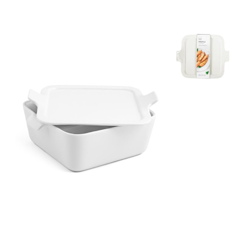 Pirofila Quadrata in Porcellana Bianca con Coperchio cm.18 h.7