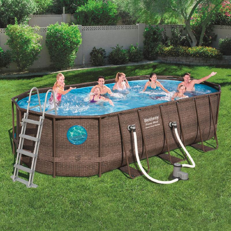 Piscina Ovale Fuori Terra Power Steel Effetto Rattan cm Ø549x274x h.122 Con Oblò