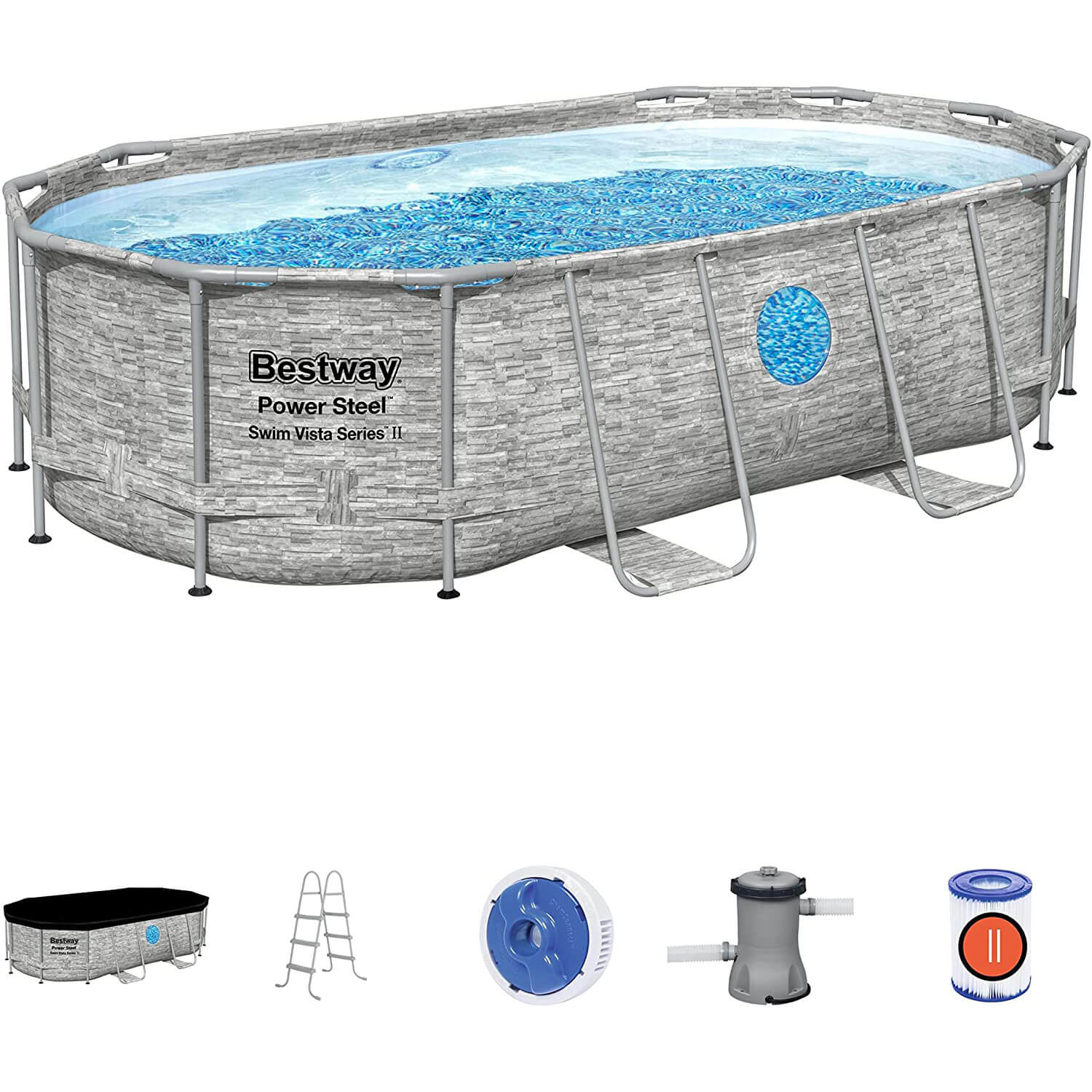 Power Steel Swim Vista Series e i suoi oblò rinforzati mettono d’accordo tutti: genitori sempre attenti, i bambini più curiosi e gli amanti delle foto profilo originali. Grazie al resistente liner in DuraPlus e alla struttura in metallo Seal & Lock che previene la formazione della ruggine, i momenti di sano divertimento dureranno per molte estati. Nella confezione troverai: piscina, pompa di filtraggio a cartuccia, scaletta di sicurezza, telo di copertura, dosatore cloro ChemConnect, toppa di riparazione.