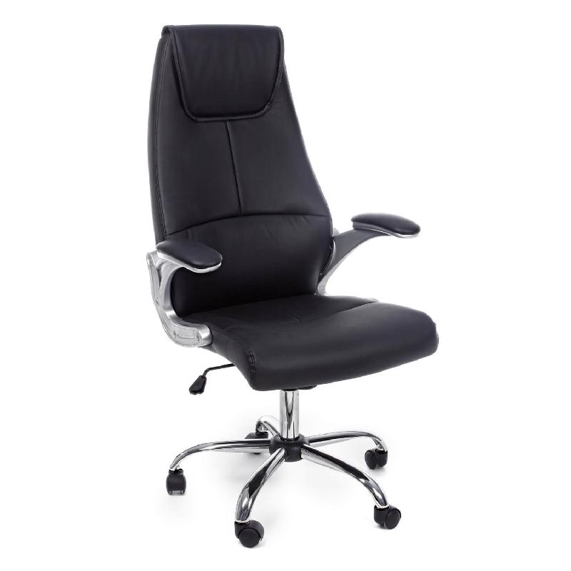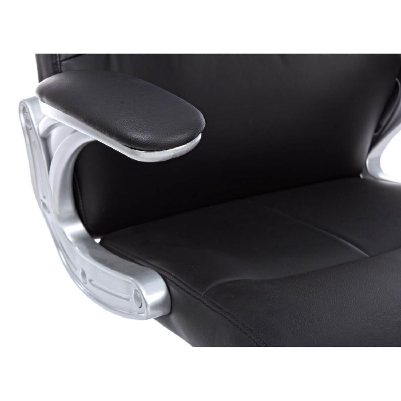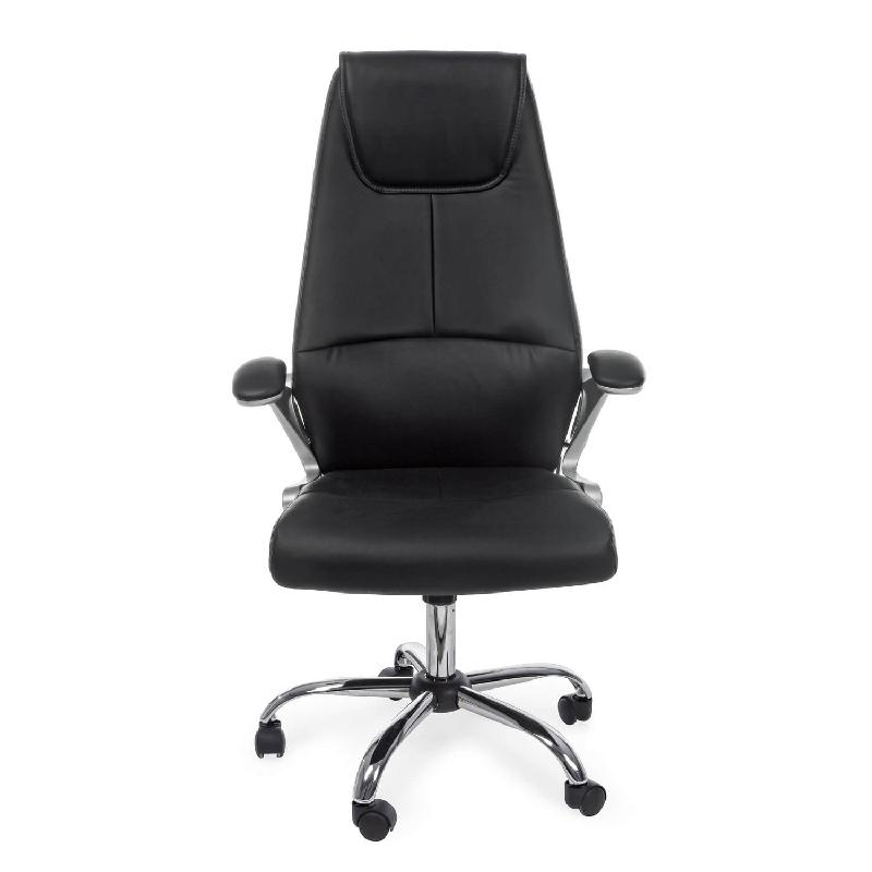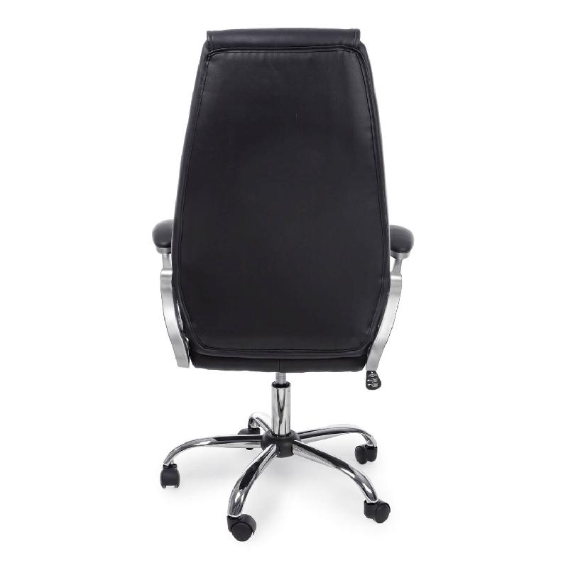 Base in acciaio cromato ø60 cm. ruote in nylon. seduta e schienale imbottiti e rivestiti in similpelle. braccioli in plastica (pp) con parte superiore rivestita in similpelle. altezza regolabile. da assemblare