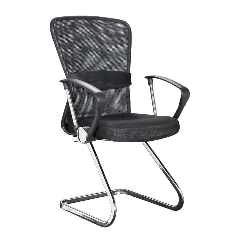 Base in metallo cromato, braccioli in metallo cromato e polipropilene. seduta imbottita e rivestita in tessuto e materiale a rete, schienale in materiale a rete. da assemblare.