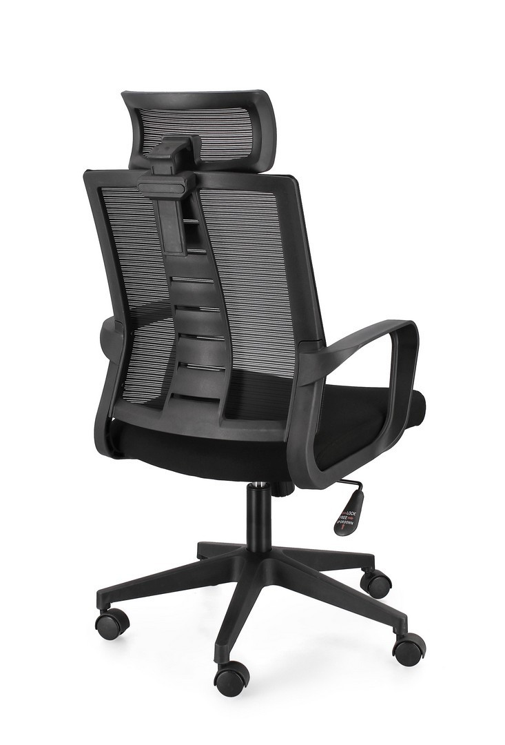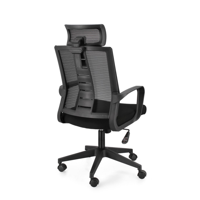 Base in nylon ø62.5 cm. ruote in plastica (pu). seduta imbottita in schiuma poliuretanica e rivestita in tessuto a rete poliestere 100%. schienale e poggiatesta in plastica (pp) rivestito in tessuto a rete poliestere 100% con supporto lombare. altezza regolabile. da assemblare.