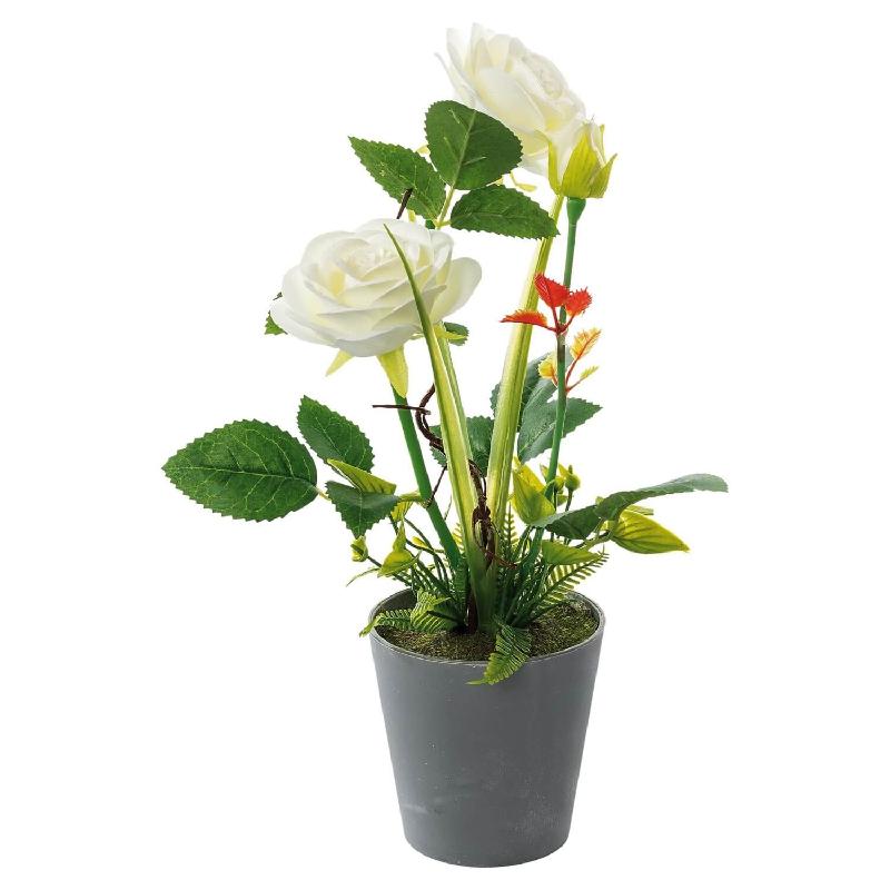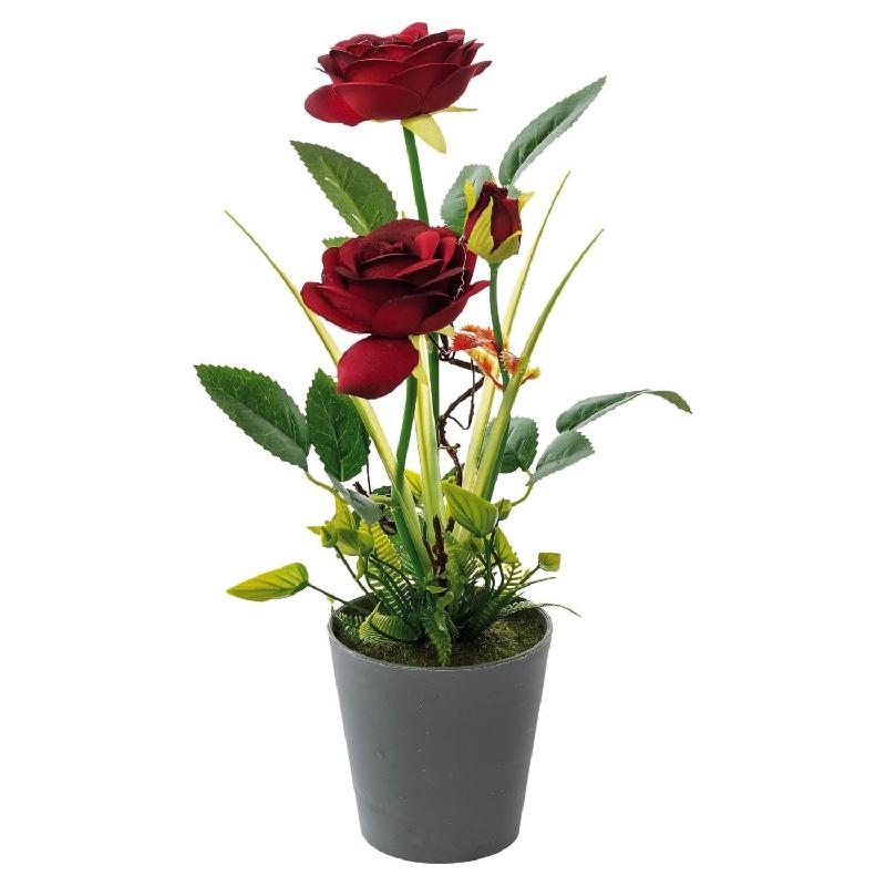 Vaso con rosa con 2 fiori e 1 bocciolo per decorazione--ass. 4 colori--diam. cm. 9 x h. cm. 31.