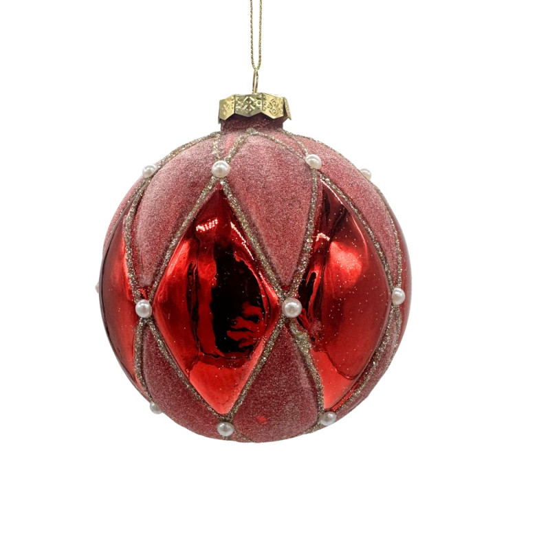 PALLA VETRO DIAMETRO 10 CM ROMBI CON DIAMANTI ROSSO