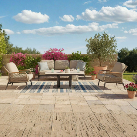 Il tavolino a contenitore offre la possibilità di riporre i cuscini. Costruito utilizzando materiali sostenibili (stile rattan piatto), a bassa manutenzione e resistenti alle intemperie; semplice da pulire.