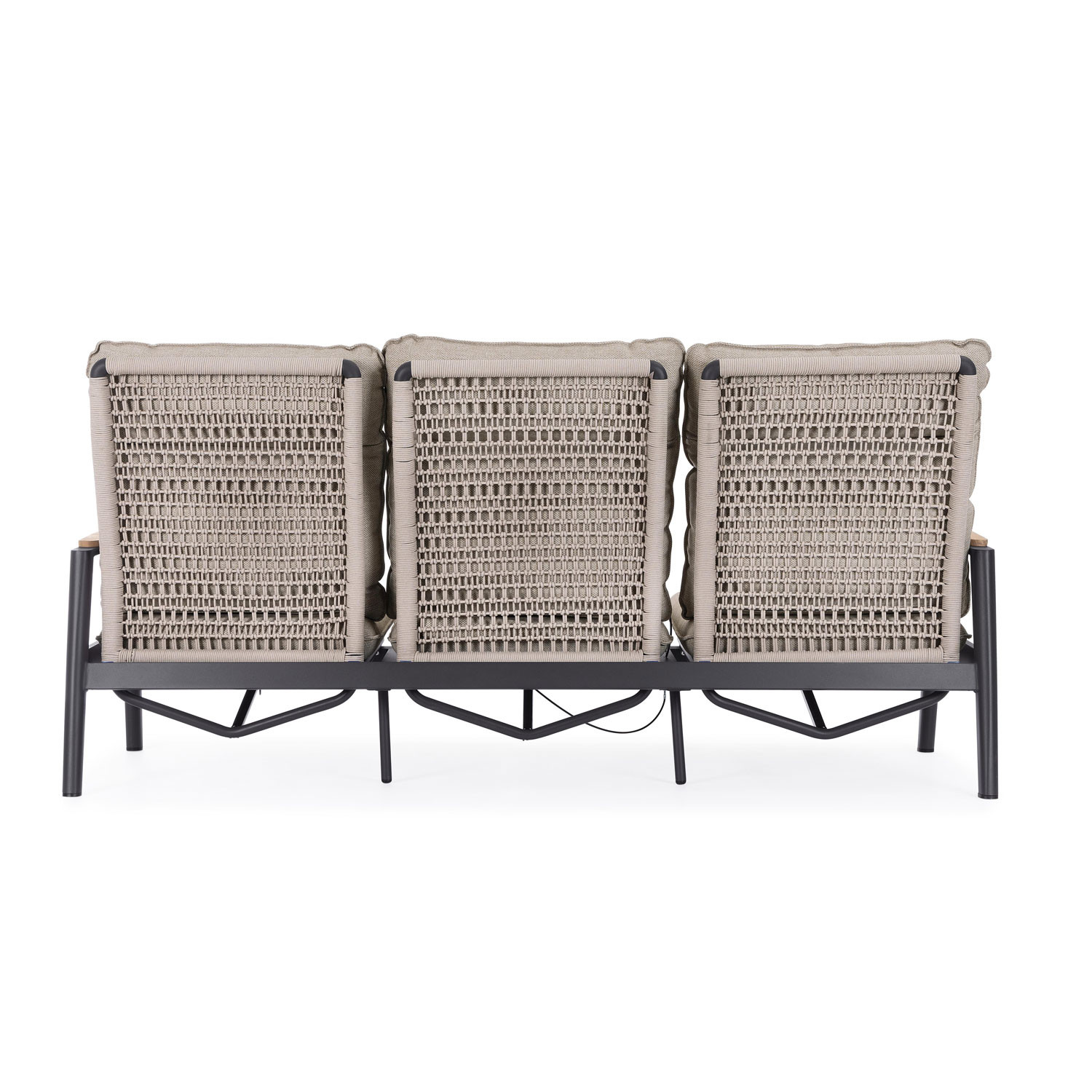 Tutte le sedute sono dotate di cuscini sfoderabili con tessuto idrorepellente Olefin (100% polipropilene), ideali per l’uso outdoor. La struttura in alluminio verniciata a polvere assicura resistenza alle intemperie e durata nel tempo, mentre le viti in acciaio inox garantiscono stabilità e sicurezza.