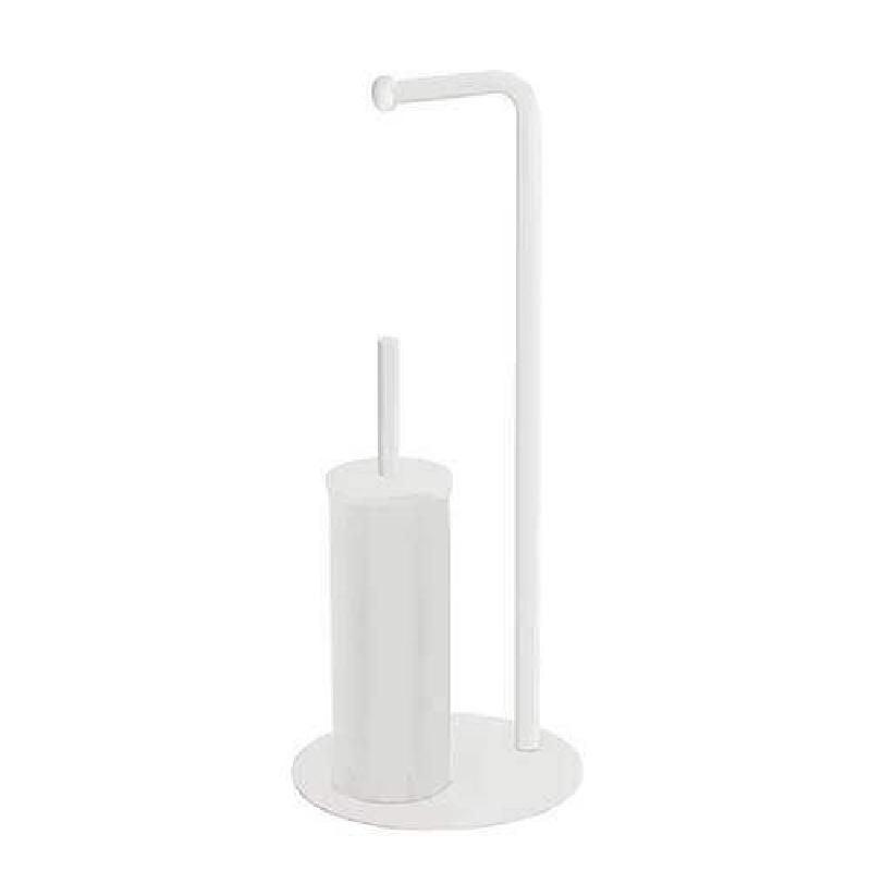 Piantana porta scopino e rotolo realizzata in acciaio, colore Bianco.