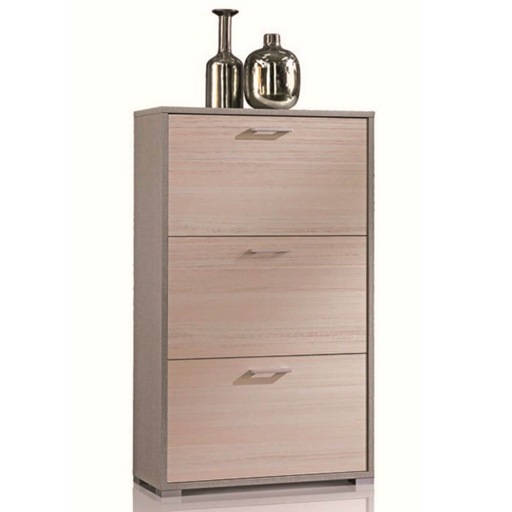 Scarpiera a 3 ante in melaminico antigraffio con vaschette in plastica doppia; contiene fino a 18 paia di scarpe.