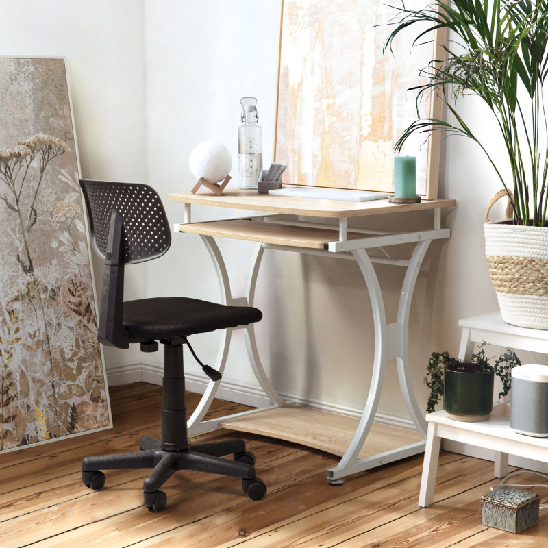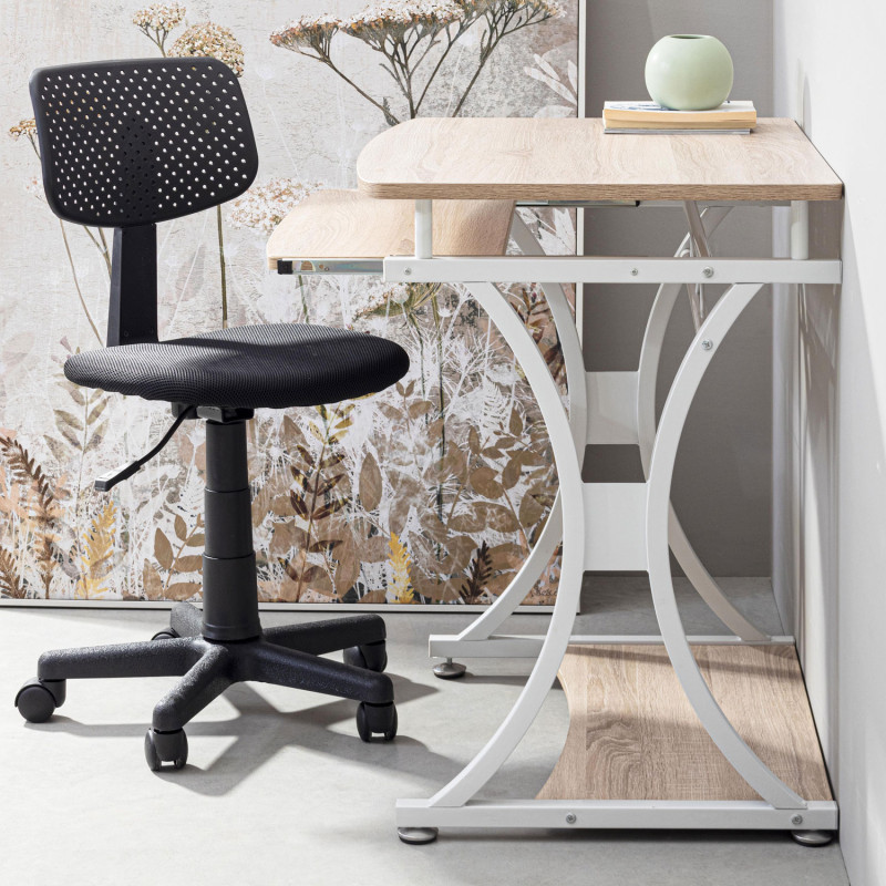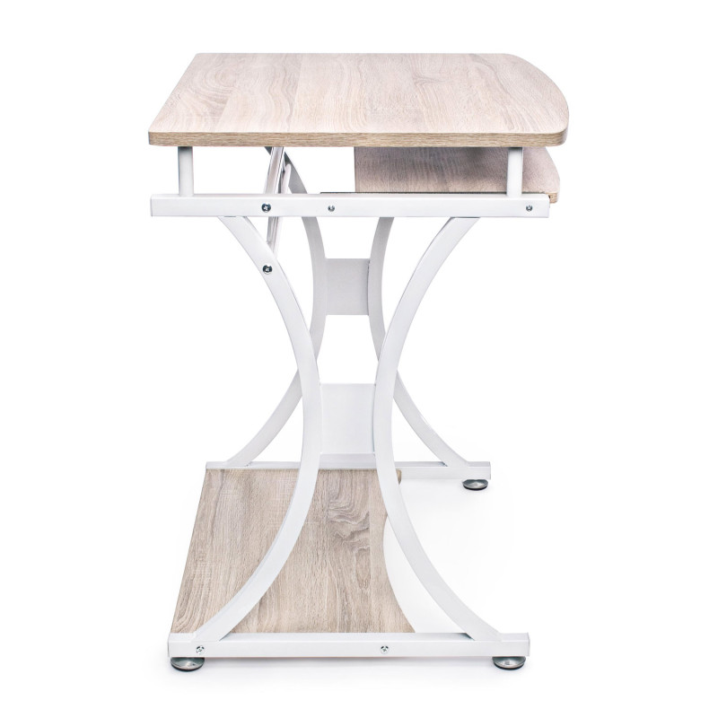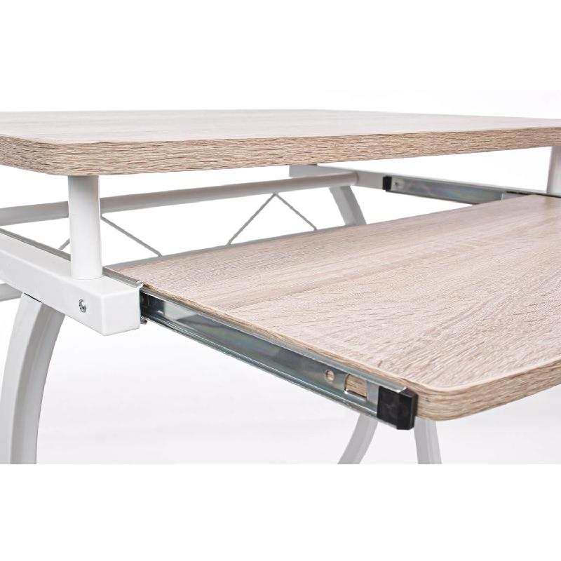 Struttura in acciaio vernicato a polvere. piani in mdf rivestiti con carta melaminica effetto legno. dotata di porta tastiera estraibile. da assemblare