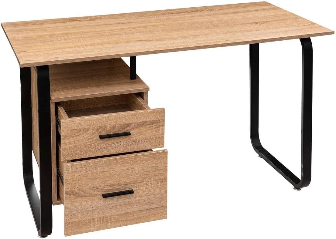 Scrivania Bava in Metallo con Cassetti Effetto Legno