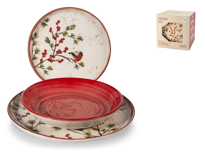 Servizio di Piatti Natalizio 18 Pezzi Nordic Red Delight in Stoneware