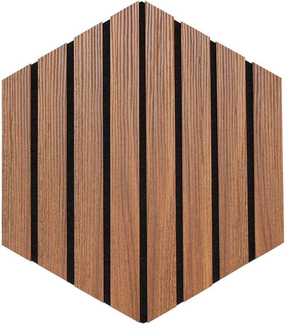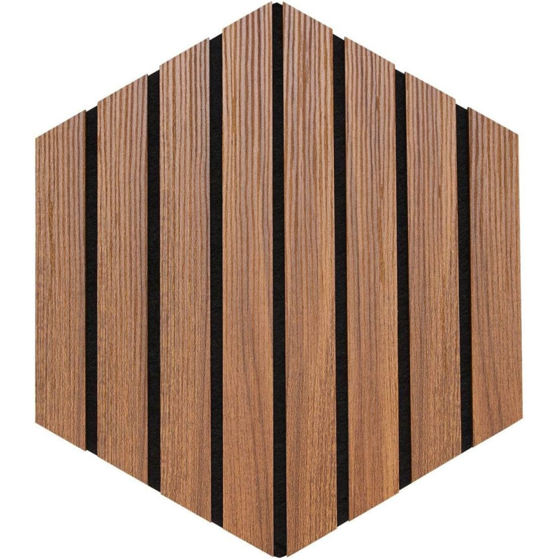 Set 3 Pannelli Decorativi Esagono Listelli cm.30X26 Legno Scuro