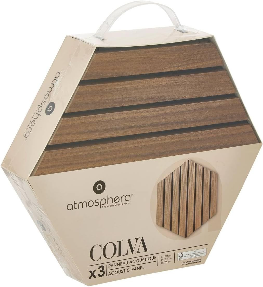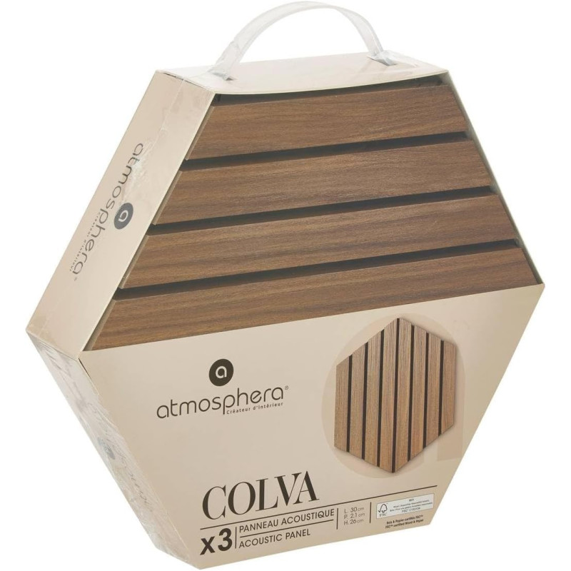 Questo set di 3 pannelli decorativi Colva ha la particolarità di avere una forma esagonale. Sono realizzati in fibre di legno certificate FSC® con feltro beige e un rivestimento in carta testurizzata effetto rovere per un aspetto molto naturale. Con uno spessore totale di 2,1 cm, offrono anche un isolamento acustico che ridurrà gli echi nella tua stanza. Mobili in legno e un grande tappeto a pelo lungo Atmosphera miglioreranno un'atmosfera accogliente e calorosa.