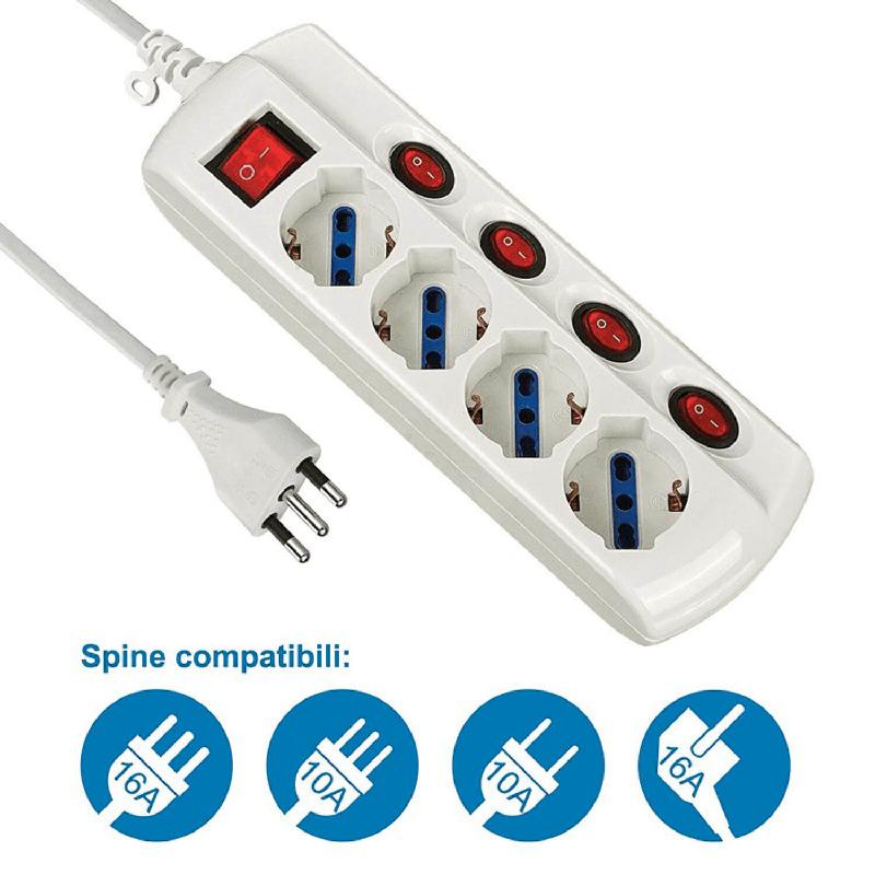 Multipresa universale con interruttore generale + 4interruttori indipendenti electraline 62058,