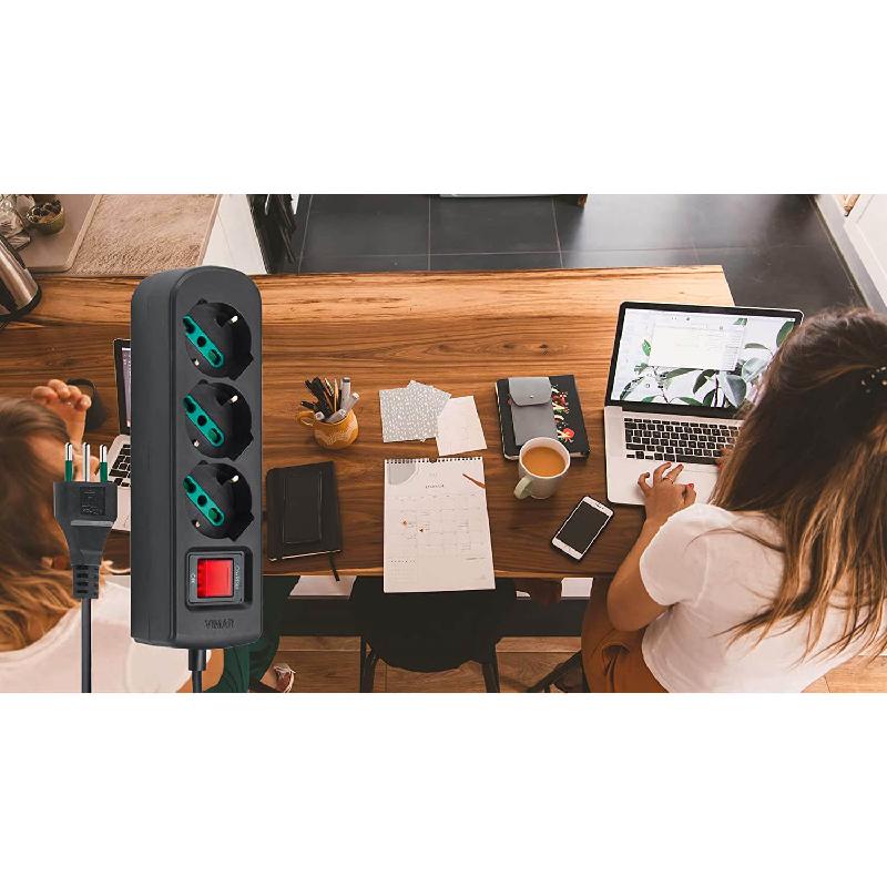 Prese universali con inclinazioni a 45° per ottimizzare l'utilizzo con diversi dispositivi e Spina orientabile per utilizzo anche salvaspazio