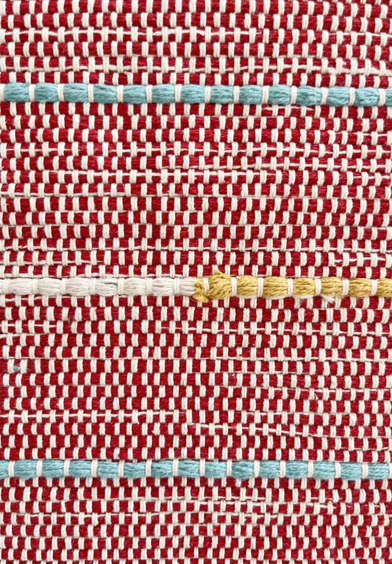 Tessitura: a trama piatta con inserto, estremità con frange annodate.