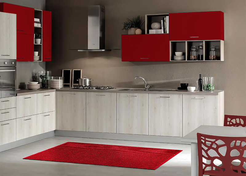 Tappeto-passatoia da cucina in cotone con trama a tinta unita con leggero effetto melange. Lavabile comodamente in lavatrice. Adatto ad ogni tipo di cucina, dal classico al moderno.
