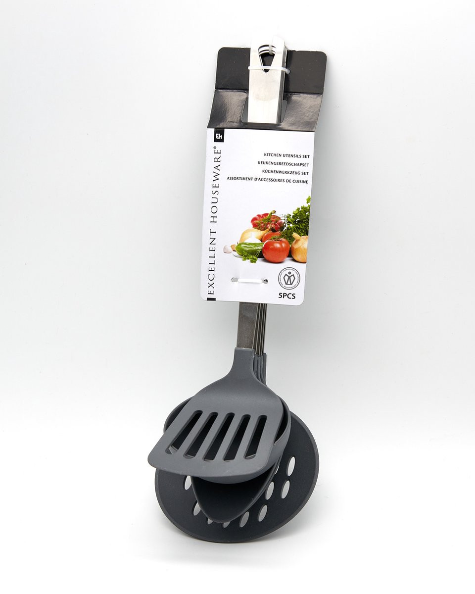 Cerchi un set di pentole completo? Con questo set di Excellent Houseware avrai a casa tutti gli utensili da cucina necessari ad un buon prezzo. Con questo set non è necessario un supporto per pentole perché i pratici fori consentono di appendere l'intero set al muro. Grazie ai materiali plastici il set può essere utilizzato con tutte le padelle e non si graffia.