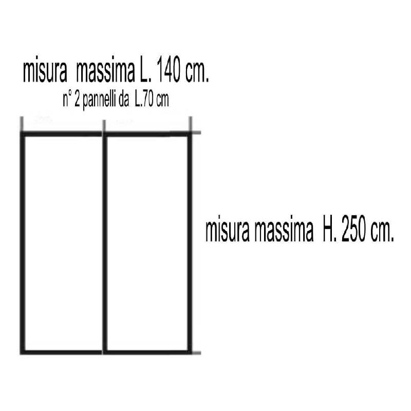 Zanzariera Magnetica con applicazione mediante velcro ideale per porte e balconi formata da 2 pannelli di 70cm. x 250 cm che si unicoscono al centro tramite 10 magneti per coprire dimensioni fino a 140 cm. x 250 cm.